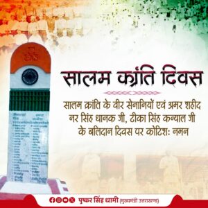 मुख्यमंत्री पुष्कर सिंह धामी सालम क्रांति दिवस पर उन अमर वीर सेनानियों को दी श्रद्धांजलि