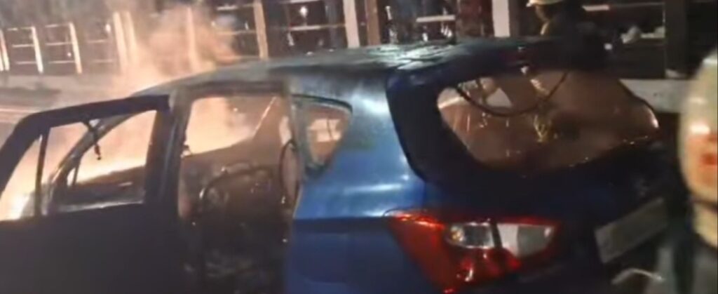 रिस्पना पुल पर चलती कार में लगी आग,पुलिस की तत्परता से बड़ा हादसा टला