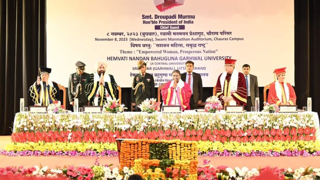 मुख्यमंत्री धामीने राष्ट्रपति श्रीमती द्रौपदी मुर्मु वा राज्यपाल लेफ्टिनेंट जनरल गुरमीत सिंह के गरिमामयी उपस्थिति में हेमवती नंदन बहुगुणा गढ़वाल विश्वविद्यालय के 11वें दीक्षांत समारोह में प्रतिभाग कर दीक्षार्थियों को शुभकामनाएं दी