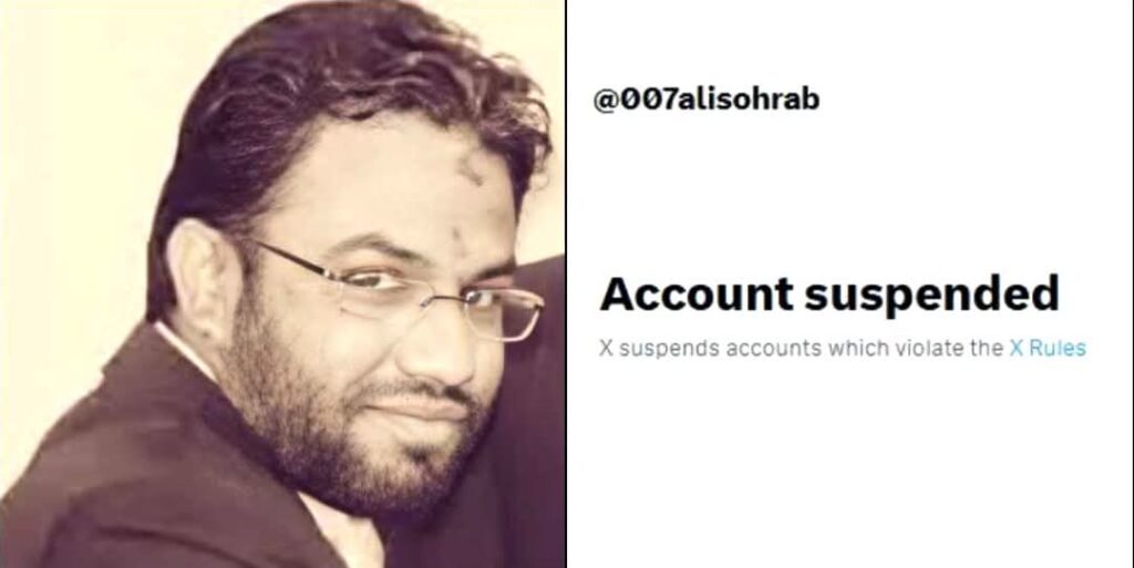 सोशल मीडिया एक्स (x) पर लगभग साढ़े तीन लाख फॉलोअर्स वाले अली सोहराब को अब प्लेटफार्म से तड़ीपार कर दिया गया है।
